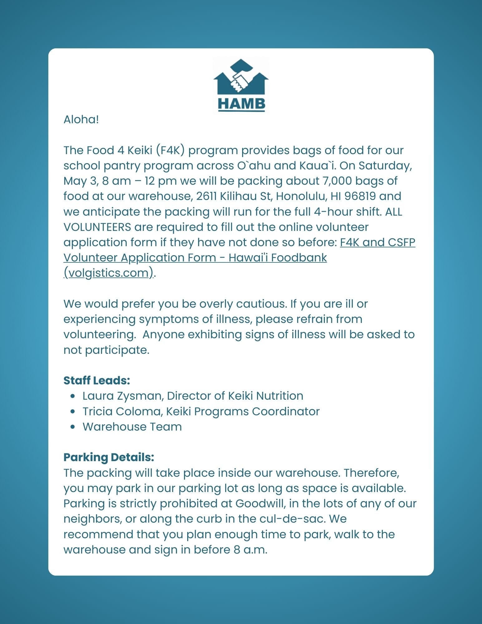 Food-4-Keiki Service Project